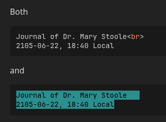 Journal of Dr. Mary Stoole<br>2105-06-22, 18:40 Local